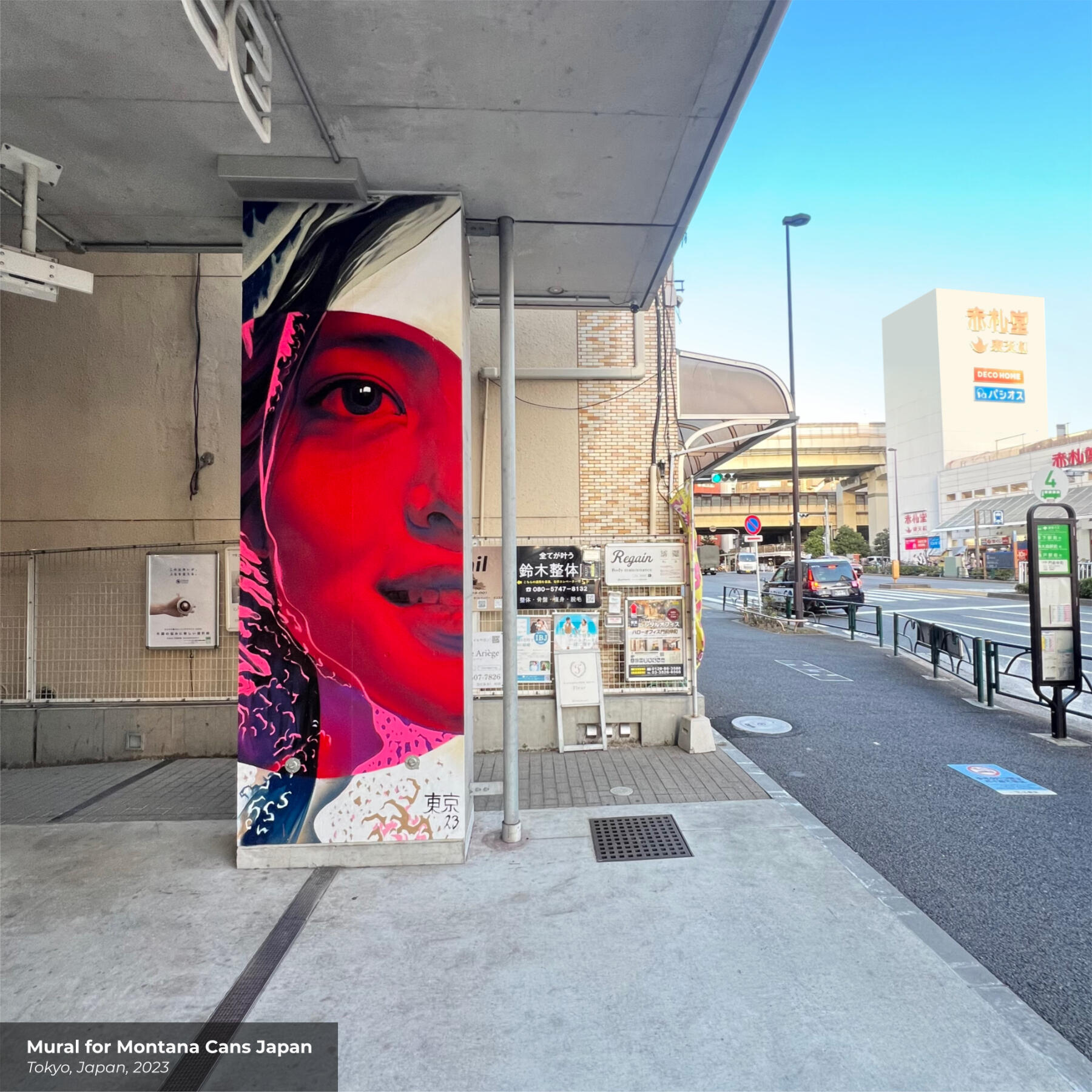 2023 - 'Red Circle' mural, inspired by 'Kanagawa-oki Nami Ura' print, Tokyo Koto city, Japan